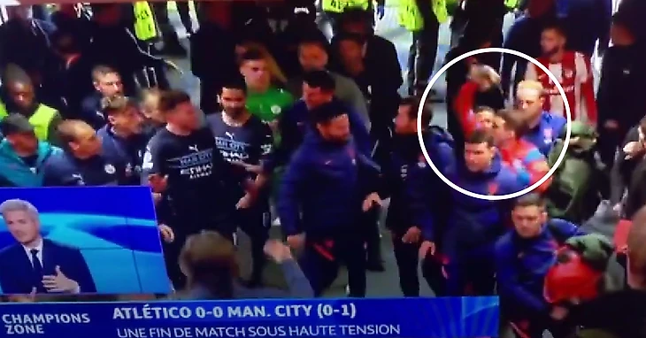 «Атлетико» и «Ман Сити» устроили массовую потасовку в конце матча, кое-как доиграли, но в итоге игроки чуть не подрались в туннеле по пути в раздевалки.