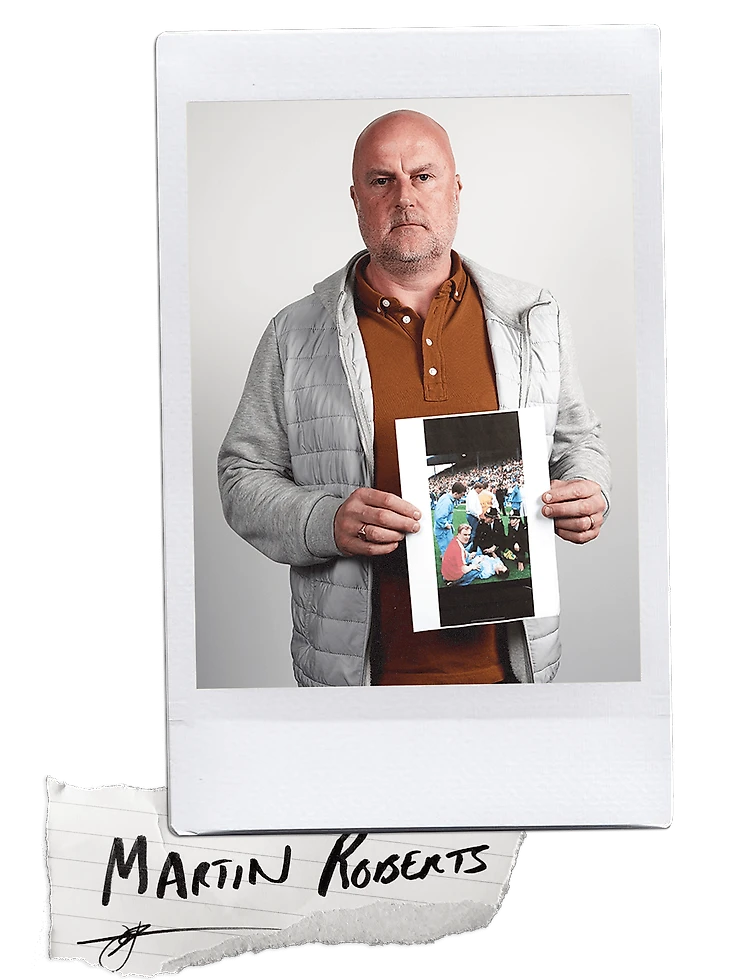 Мартин Робертс живет с тем же чувством вины. Незадолго до начала матча он понял, что не может поднять руки над грудью. Он начал чувствовать слабость. Он начал покачиваться. Кто-то схватил его. Затем барьер сломался, и он упал вместе с ним. Поднимаясь, он перелезал через людей. Там были женщины и дети. «Вонь отвращения была ужасной. Лица людей становились поджаренными. Этот запах никогда не покинет меня»”.