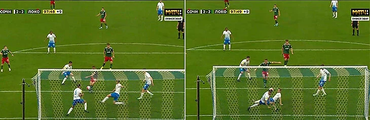Давайте смотреть, что произошло на восьмой добавленной минуте при счете 2:2.