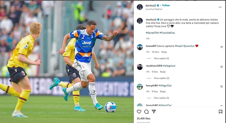 После игры Данило зашел на свою страницу в Instagram, чтобы обратиться к болельщикам: «Ничья, которая причиняет боль, даже если мы боролись до конца. Нет никаких оправданий: теперь нужно готовится к матчу в среду, чтобы немедленно вернуться в строй! Forza Juve!».