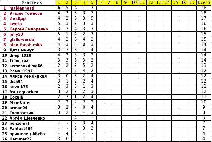 Лига Тотал. Таблица после 5 туров: