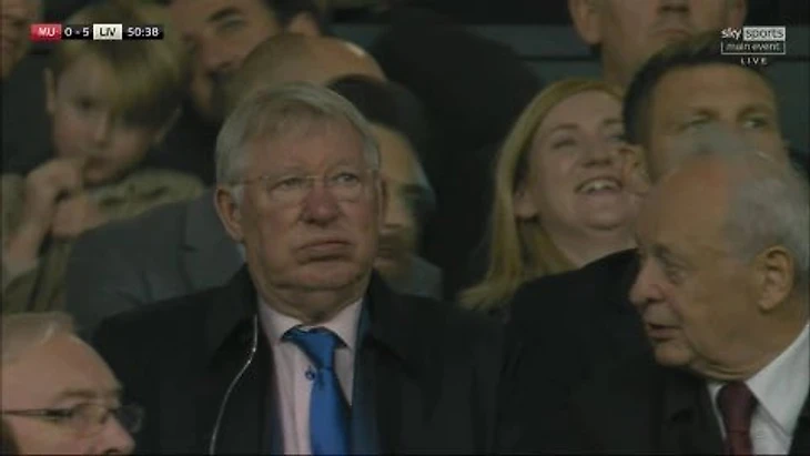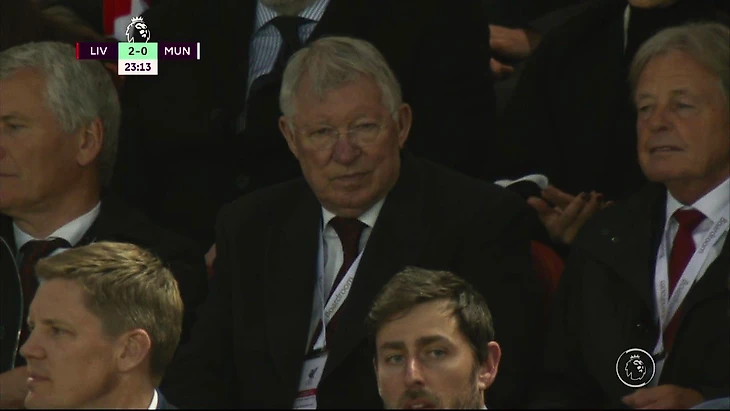Легендарный тренер приехал на «Энфилд», и после того, как в ворота Давида Де Хеа влетел второй мяч, операторы, разумеется, поймали лицо сэра Алекса на трибунах:
