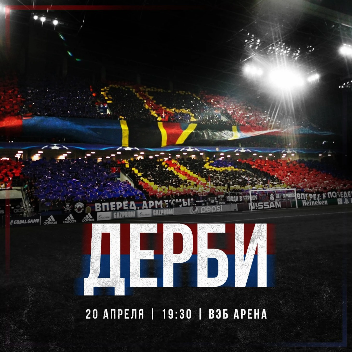 Дерби - это всегда матч с повышенным вниманием и напряжением! На кону стоит выход в полуфинал Кубка и продолжение борьбы за трофей! Обращаемся ко всем армейским болельщикам, собирающимся завтра посетить Песчанку: 1. На стадион - заблаговременно! Запуск зрителей открывается в 17:30 - за два часа до начала матча. Это будний день, и как показывает практика, все пойдут к началу встречи. Дабы избежать несвоевременного попадания на игру - приходите на арену заранее! Продумывайте свой маршрут так, чтобы за 10 минут до стартового свистка быть на секторе. 2. Именно мы - 12 игрок команды! Убедительно просим сконцентрироваться на поддержке нашей команды и делать все, что зависит от нас для победы! Гоните вперед команду с первой и до последней минуты, используйте визуальные элементы суппорта - флаги, шарфы, пойте во славу ЦСКА! 3. Просим отказаться от использования пиротехники и какого-либо проявления политических заявлений. После осенних матчей клуб до сих пор находится под пристальным вниманием и давлением! Еще раз сообщаем Вам о правилах на фанатской трибуне 'А’: • Черный верх. Красно-синий шарф • Поддержка команды на протяжении всего матча • Запрещена фото- и видеосъемка во время игры • Девушки располагаются на верхнем ярусе ‘Трибуны А’. • Запрещено кидать посторонние предметы и выбегать на поле. • Запрещено курение во время матча. Не мешайте себе и окружающим поддерживать команду. • Запрещено использование пиротехнических изделий. Соблюдение этих правил гарантирует качественный суппорт. Никто, кроме нас самих, не сможет сделать поддержку команды ярче. То, как выглядит и звучит трибуна, зависит только ОТ ТЕБЯ! 20 апреля. Песчанка. 19:30. А над нами армейский флаг, мы всех сильнее…