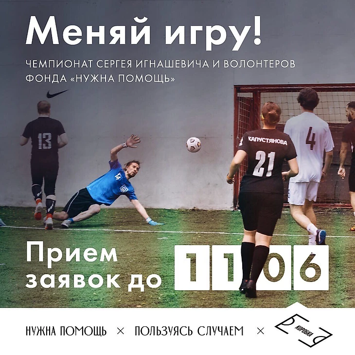 Сергей Игнашевич, волонтеры фонда «Нужна помощь» и проект «Коробка» начинают принимать заявки на чемпионат «Меняй игру!». Это турнир, с помощью которого в прошлом году мы собрали более 2 миллионов рублей – и провели финал с участием Владимира Габулова и Юрия Жиркова.