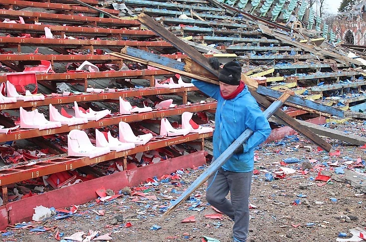 Больше месяца спустя местные жители совместно с властями приступили к восстановлению стадиона. Сейчас газон активно освобождают от посторонних предметов.