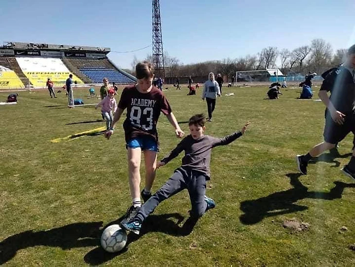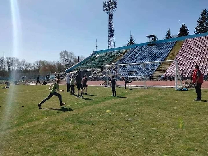В Чернигове приводят в порядок стадион, который разрушили в марте. Теперь дети играют там в футбол