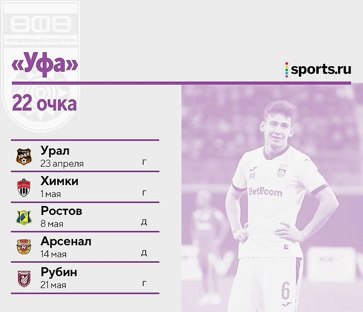 Впереди сразу четыре матча с соседями по таблице, да и «Ростов» недалеко ушел от этой шестерки. Здесь все максимально в руках «Уфы» – правда, из четырех матчей с прямыми конкурентами сразу три будут в гостях, а на выезде хуже уфимцев играет только «Арсенал».