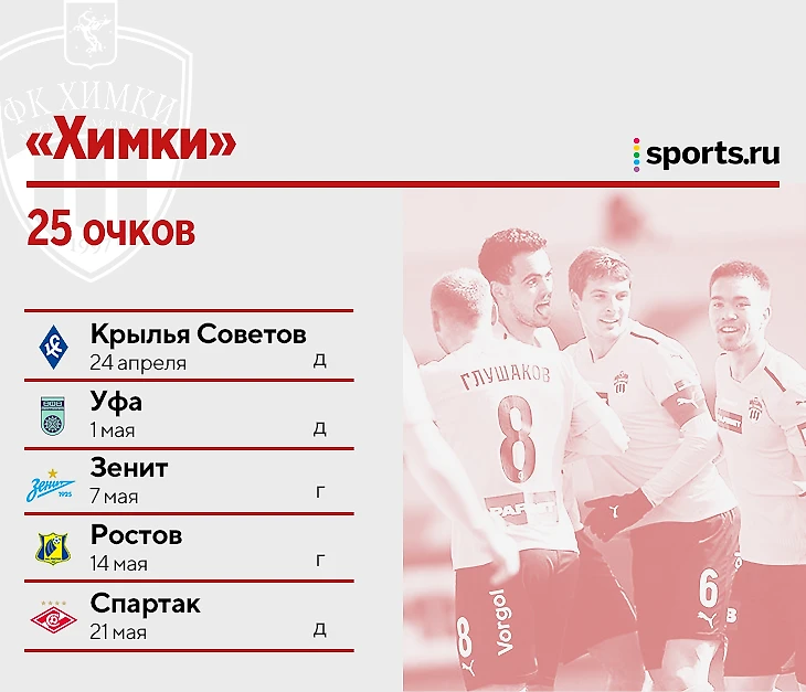 За семь весенних игр «Химки» не просто сократили отставание от зоны стыков, но уже близки и к тому, чтобы сохранить место в РПЛ напрямую. Только «Динамо» за последние пять матчей набрало больше очков (12), чем «Химки» (11), столько же – у «Зенита». Вполне лидерский темп.