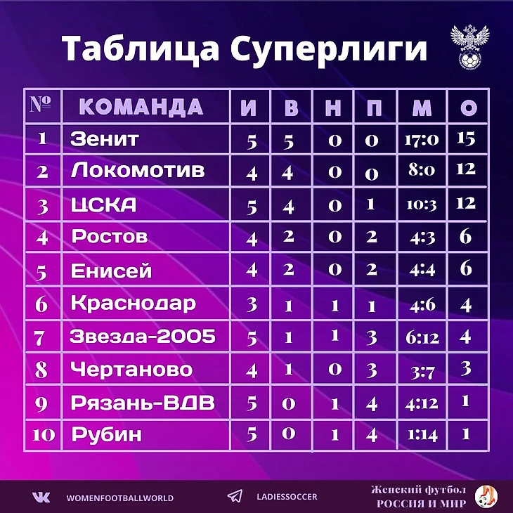 Сегодня стартует 6-й тур женского чемпионата России по футболу - Суперлиги. Он интересен как минимум битвой лидера ("Зенита") и действующего чемпиона ("Локомотива"). Эти же клубы сыграли в последнем финале Кубка России, осенью на "Самара Арене".