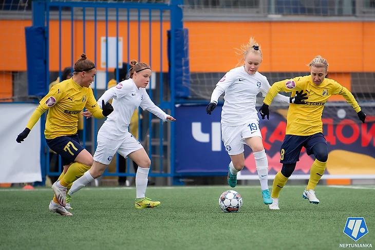В составе хозяев пару раз пристреливалась к воротам 16-летняя Яна Свистунова (№19). Она еще не открыла свой бомбардирский счет в Суперлиге.