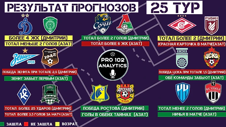 6:56 Результаты прогнозов предыдущего 25 тура РПЛ.