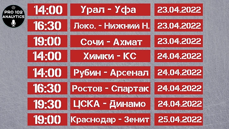 00:00 Расписание 26 тура РПЛ сезона 21/22