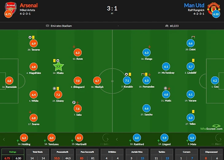 «МЮ» на выезде проиграл важнейший матч с «Арсеналом». Единственный гол за «красных дьяволов» забил Криштиану Роналду на 34й минуте встречи, но этого было не достаточно, чтобы ответить на голы Нуну, Сака и Джака.