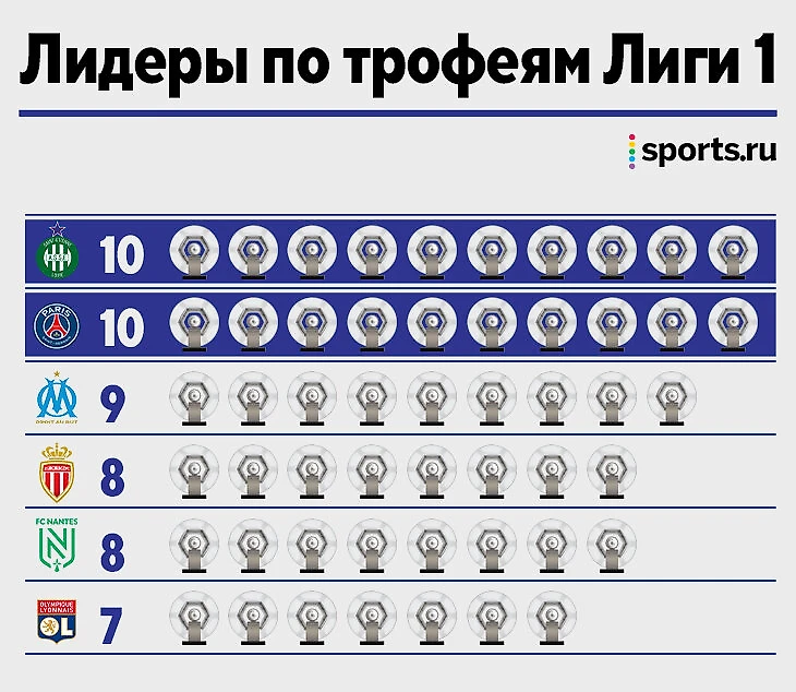 Позади – вся Франция: «Марсель» ниже с девятью чемпионствами, «Лион» – с семью. Правда, «Лион» выиграл все титулы подряд – с 2002-го по 2008-й.