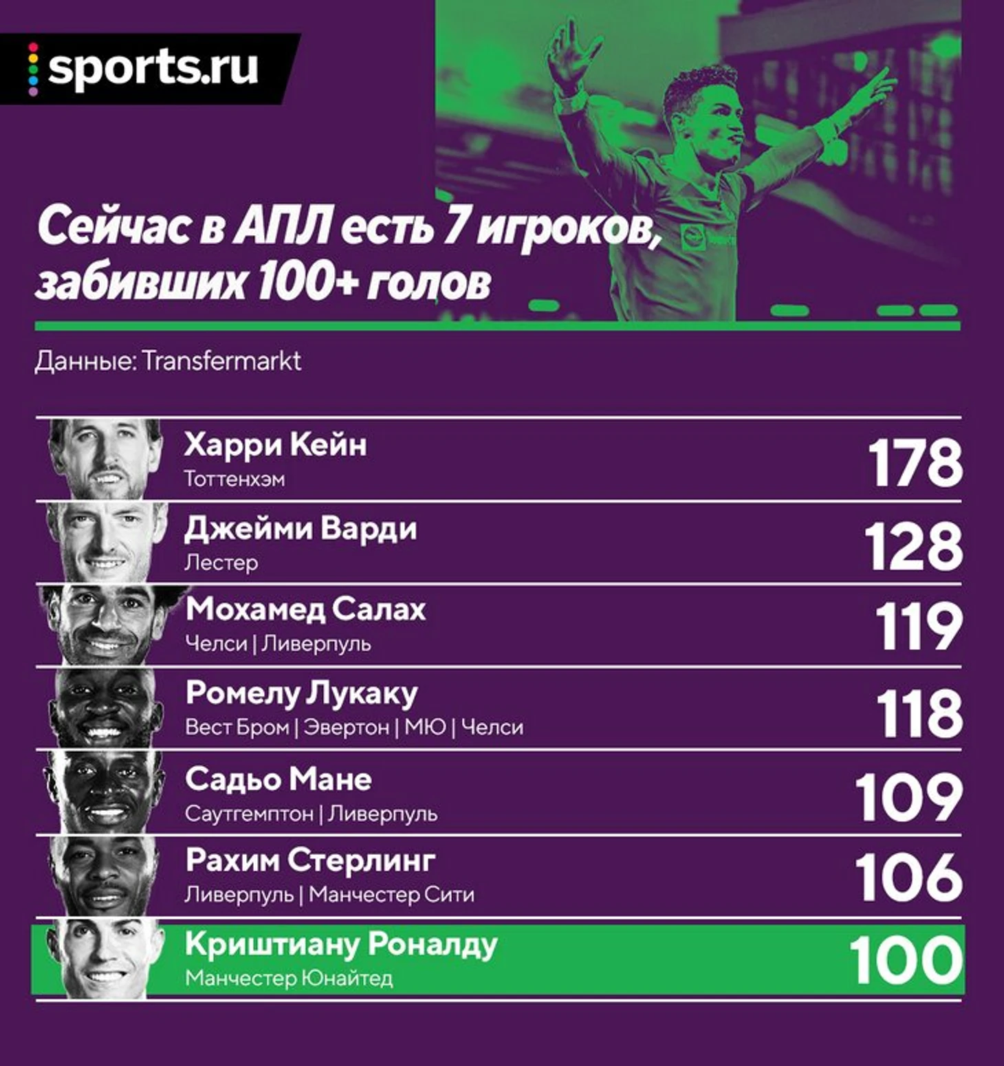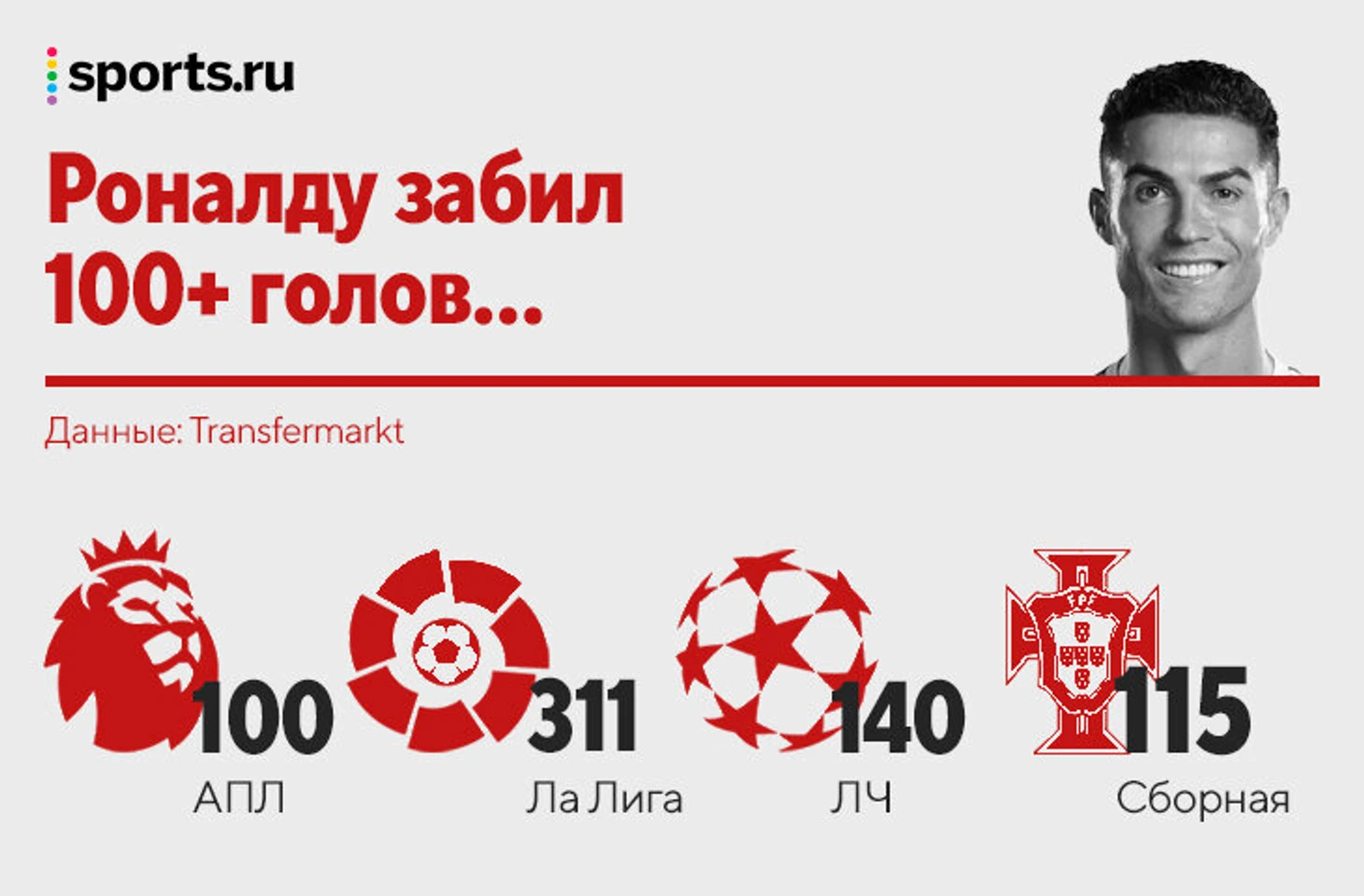 Но АПЛ не единственное место, где Криштиану забил 100 или больше.