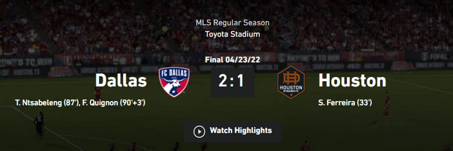 Мэтью Дойл, ежетурно вручающий переходящий приз «Лицо недели» на этот раз присудил его тренеру Хьюстона Пауло Нагамуре, в момент, когда Даллас забил победный гол на 4 компенсированной минуте.