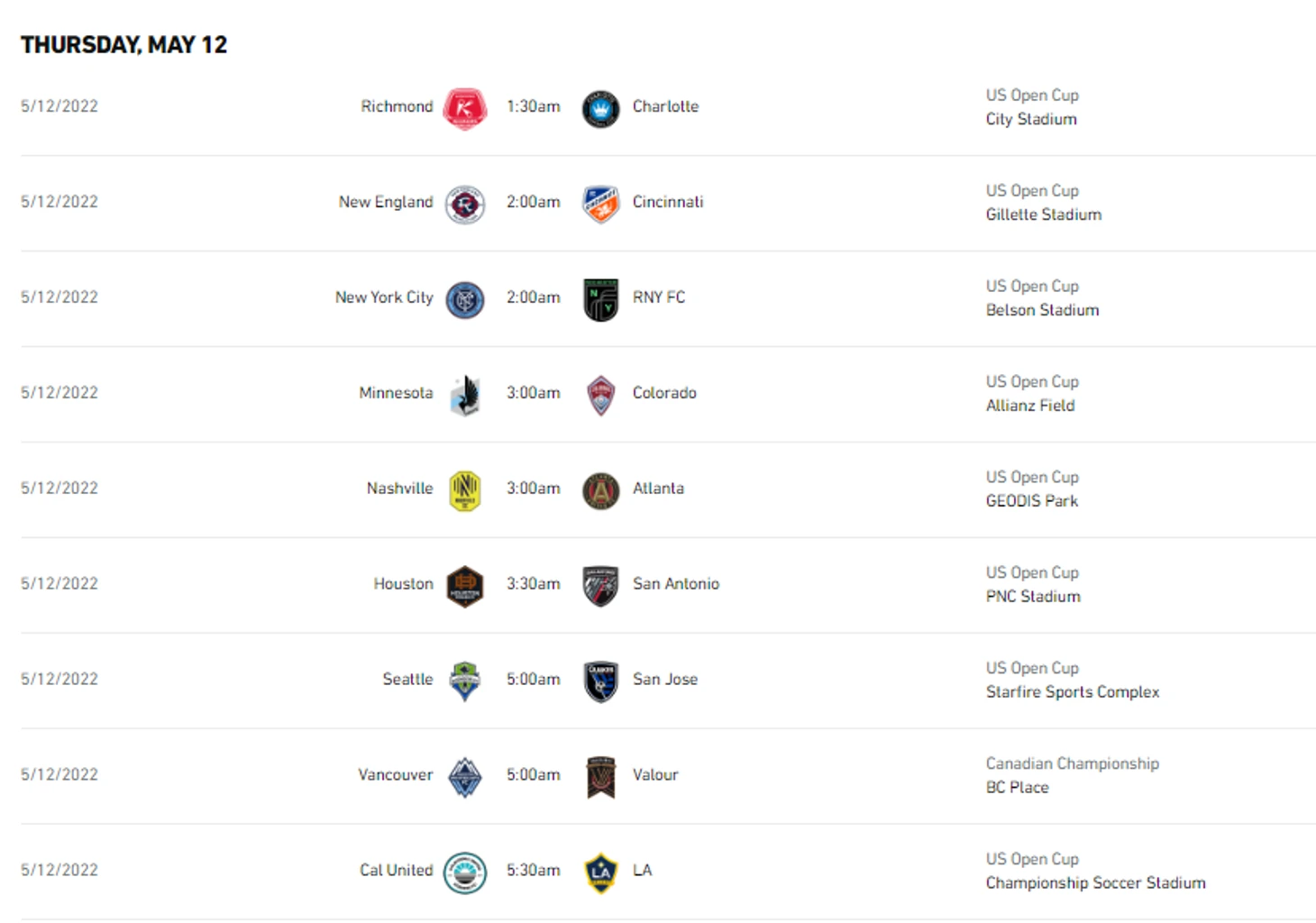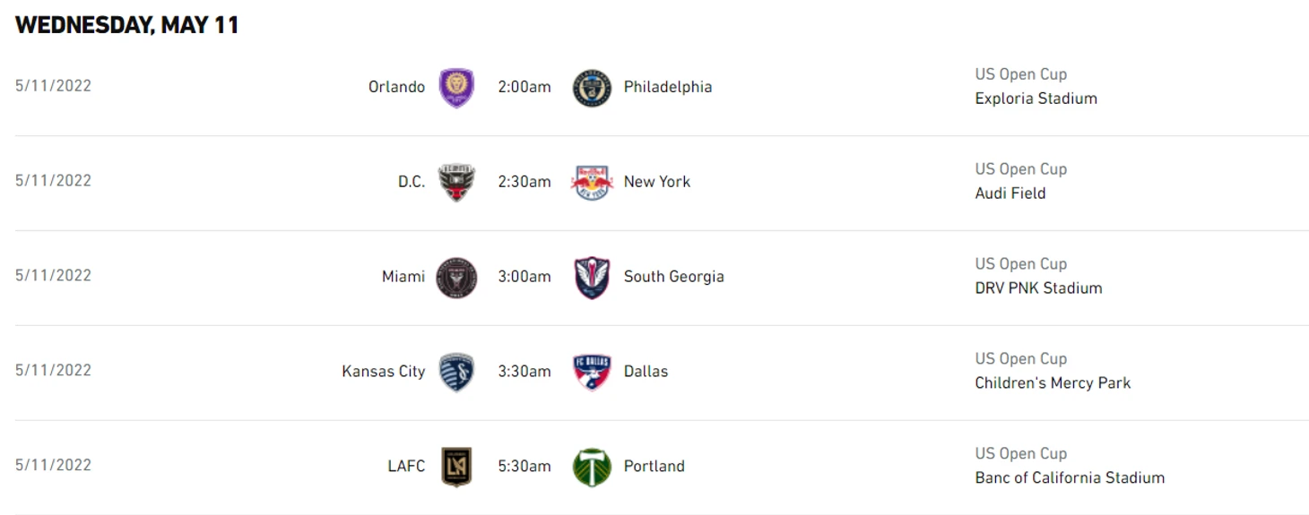 Следующий раунд (1/16) состоится 11 и 12 мая и в нем к розыгрышу уже присоединятся все команды MLS, кроме, естественно, проигравших на предыдущей стадии.
