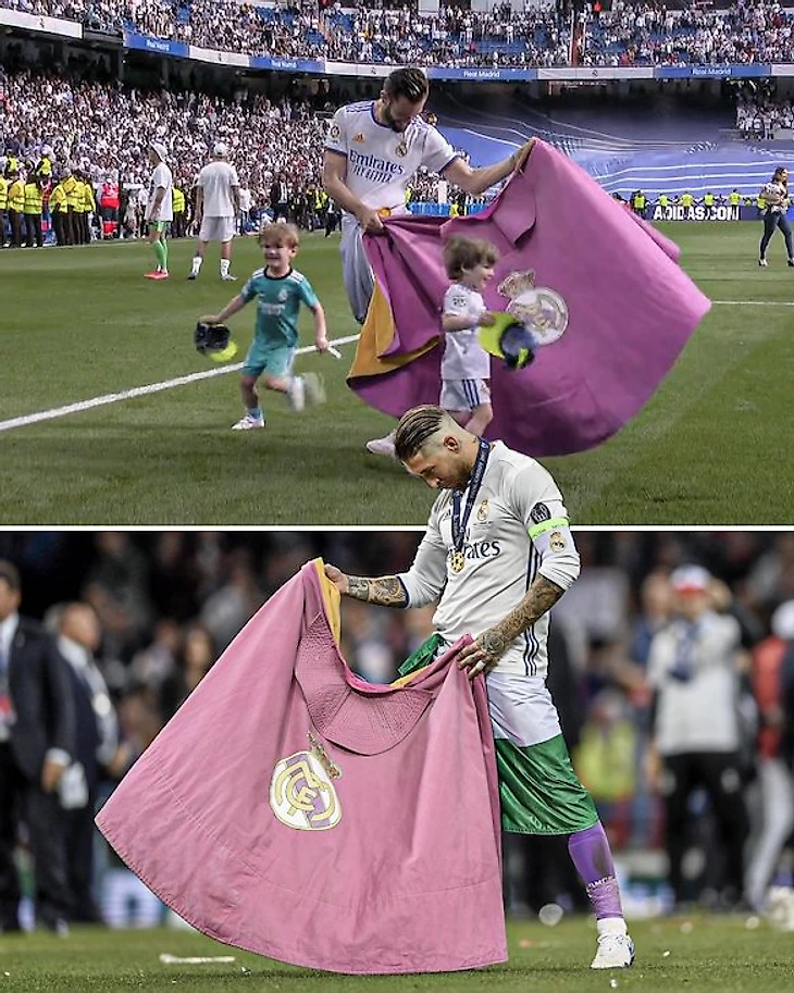 Начо Фернандес перенял традицию Рауля – и устроил корриду прямо на поле. В роли быков выступили дети. Кстати, долго роль матадора исполнял Серхио Рамос, вы точно это помните.
