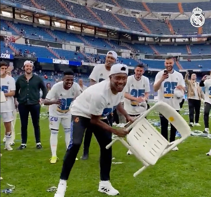 Главный спонсор успехов «Реала» в этом сезоне – Давид Алаба со стулом. Австриец не мог проигнорировать новую традицию после чемпионства и победоносно вскидывал стул прямо на поле.