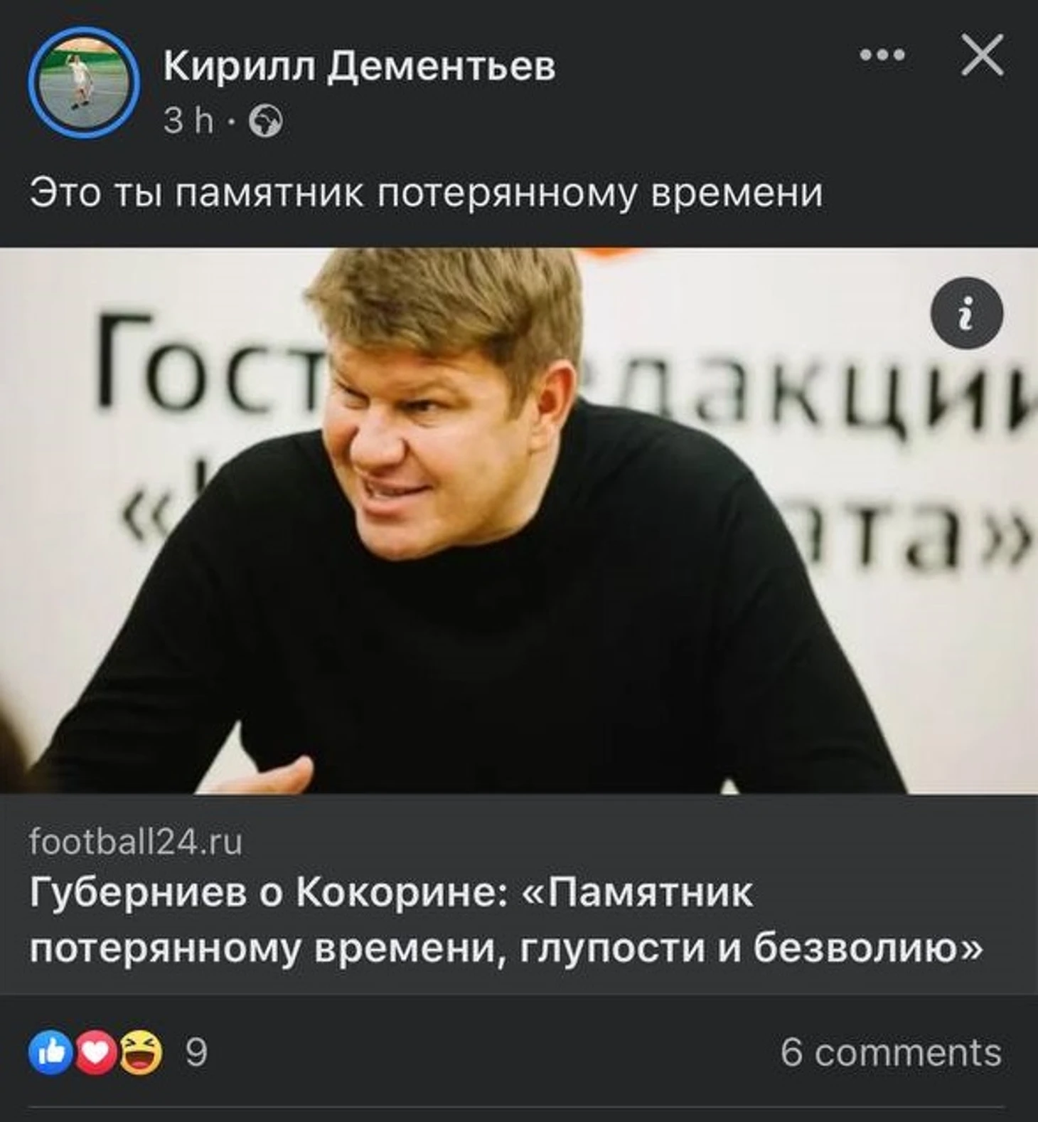 А вот как отреагировал на слова Губерниева комментатор Кирилл Дементьев у себя в соцсетях: