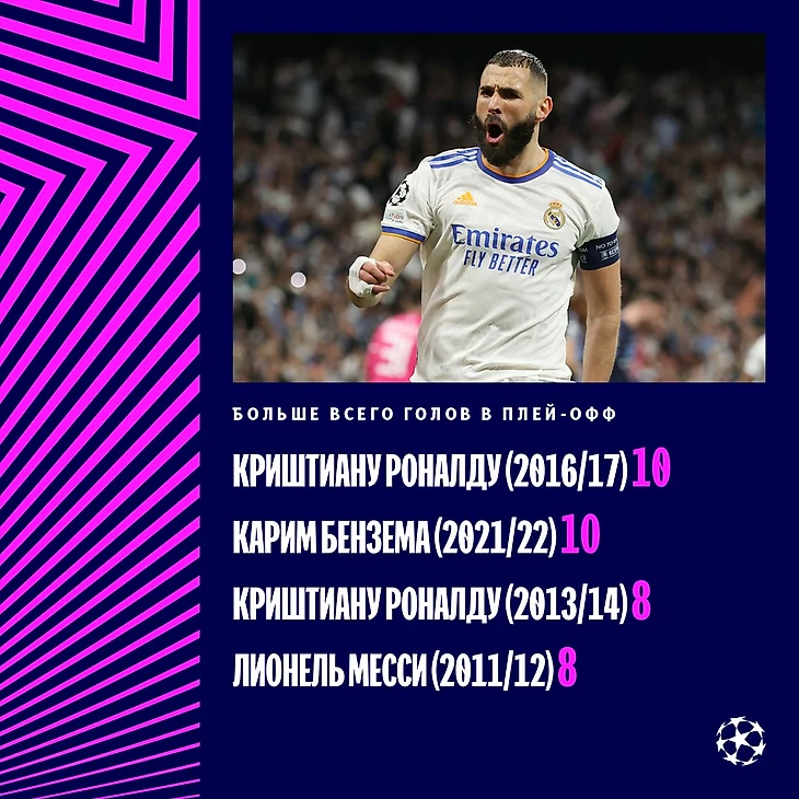 Бензема повторил рекорд Криштиану по голам в плей-офф Лиги чемпионов