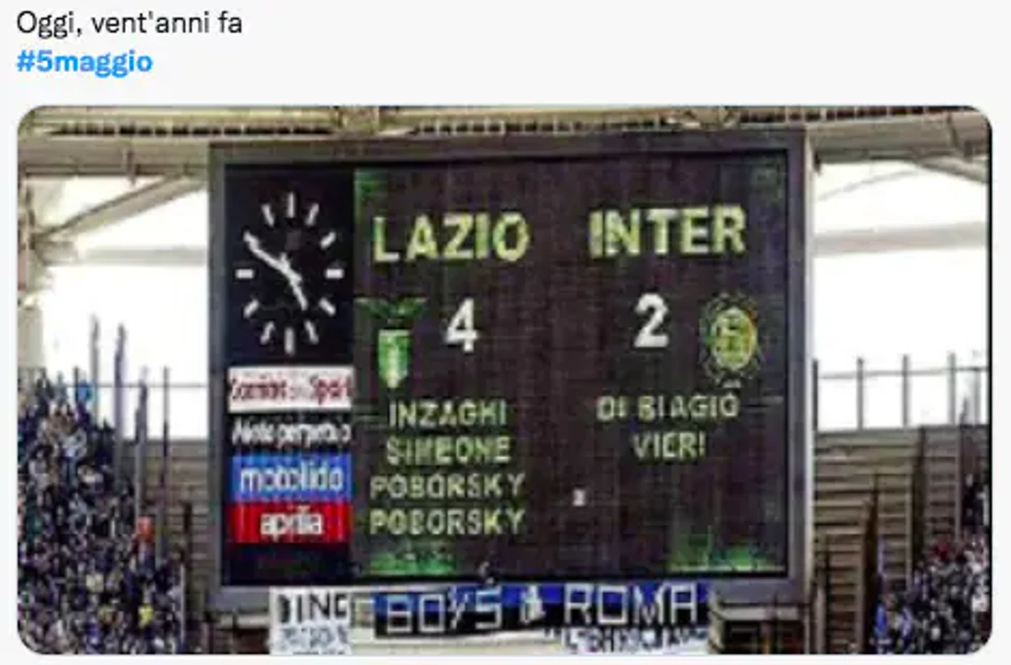 Болельщики «бьянконери», спустя 20 лет, отмечают в Twitter дерзкую победу в чемпионате над «Интером».