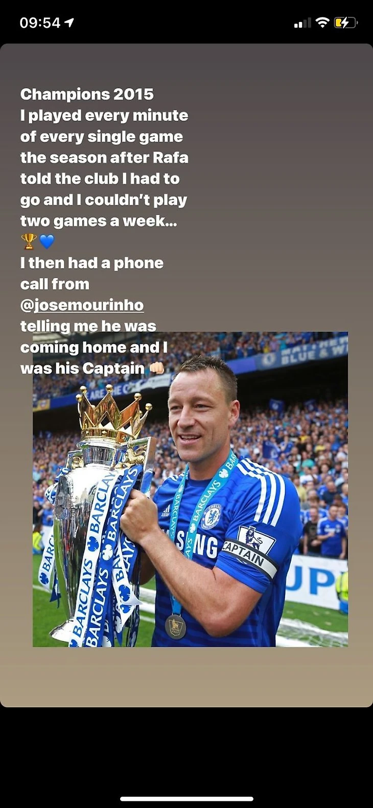 Джон Терри запостил историю, в которой неожиданно наехал на Рафу Бенитеса – и одновременно с восторгом вспомнил о времени под руководством Жозе Моуринью.