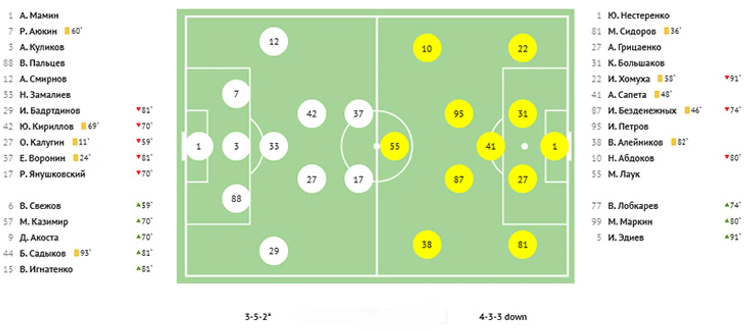 На 27-й минуте хозяева успешно разыграли угловой. Малых с левого фланга подал на дальнюю штангу, Прудников скинул мяч обратно во вратарскую Обухову, и форвард «Оренбурга» метров с трех головой переправил его в сетку.