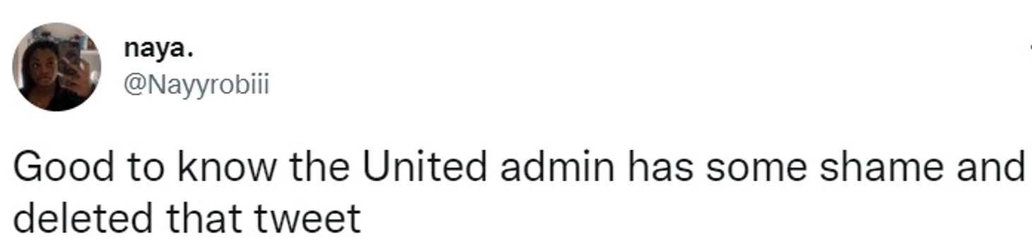 «Кажется, я первый раз вижу, как «Юнайтед» удаляет твит»