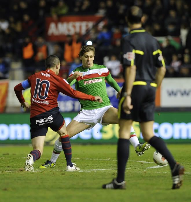 Бильбао, разумеется, тоже не лыком шит, и свои атаки проводил не менее опасно. Де Маркос после пропущенного мяча стал чаще работать впереди и в одном из эпизодов получил роскошный пас на ход от Муньяина. Неудачно действовала защита «Осасуны», которая сперва дала сопернику получить мяч аккурат между оборонцами, а затем позволила ему убежать в отрыв. Де Маркос, как казалось, бил наверняка и должен был сравнивать счет, но вратаря выручила, лучшая подруга - штанга.