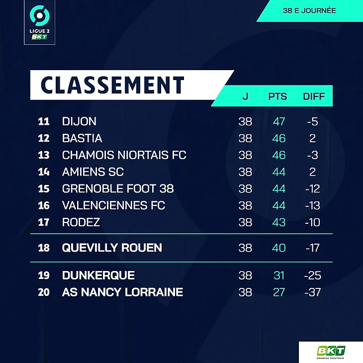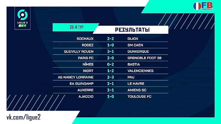 Итоговая турнирная таблица Лиги 2, второго по силе дивизиона Франции.