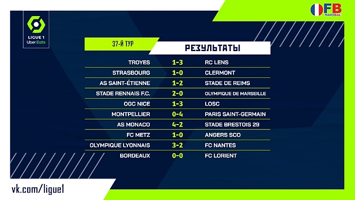 В субботу состоялся предпоследний тур сезона-2021/22 в Лиге 1, а также последний тур во втором дивизионе Франции (Лига 2).