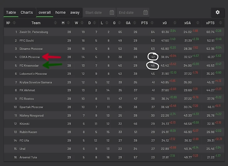 Стоит напомнить, что команды находятся совсем рядом друг с другом, а отстаёт Краснодар всего на 1 очко: