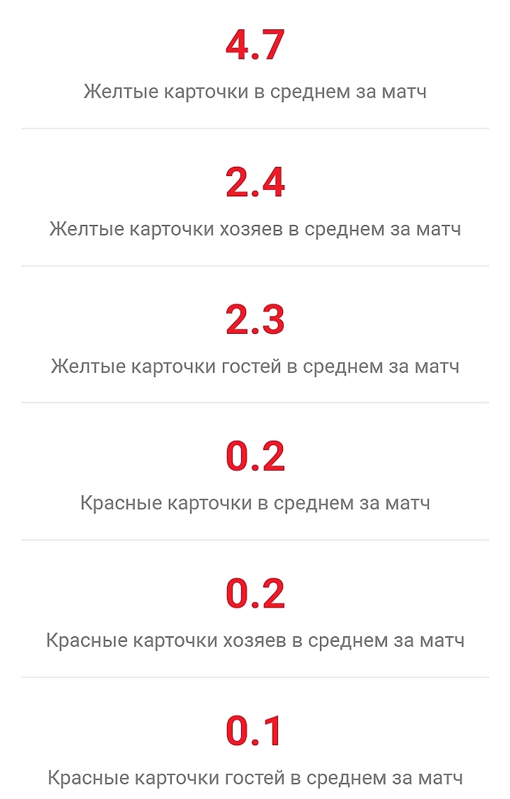 Как мы видим, в среднем Москалёв показывает 5 жёлтых карточек и 0 красных