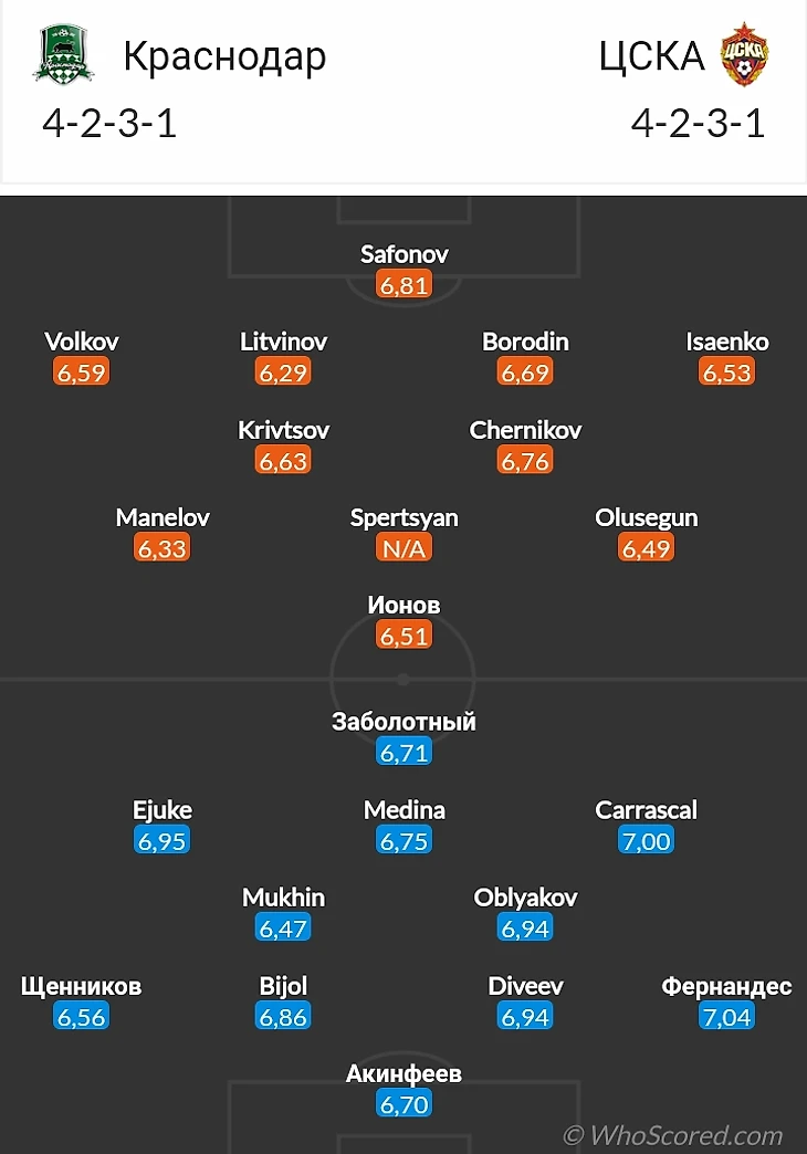 Как мы видим, обе команды скорее всего будут использовать тактику 4-2-3-1. Что надо отметить, в составе ЦСКА есть немалое количество игроков, которые пропустят матч.