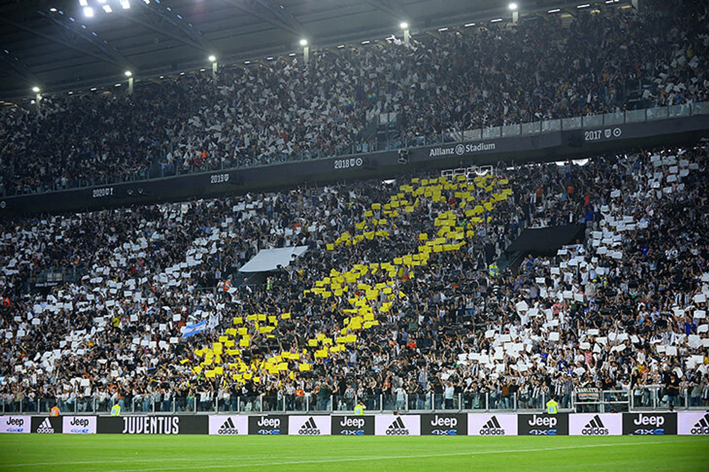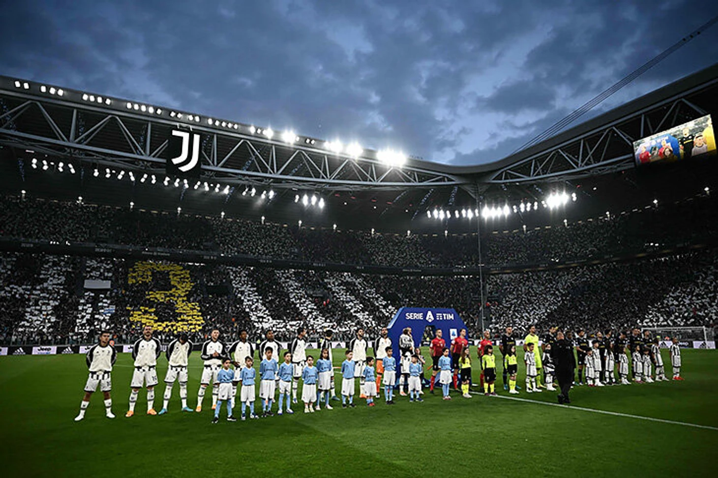 На стадионе встречал красивый перфоманс болельщиков. «Кьелло» со стилизацией под №3 – номер Кьеллини.