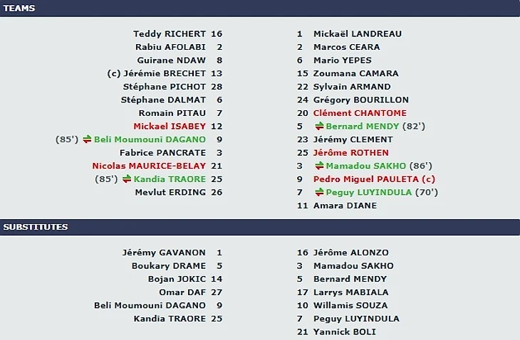 В середине первого тайма Амара Диане открыл счет, получив передачу от Клемана Шантома, однако «Сошо» удалось отыграться: Гирам Н'Дав с углового поразил ворота Микаэля Ландро.