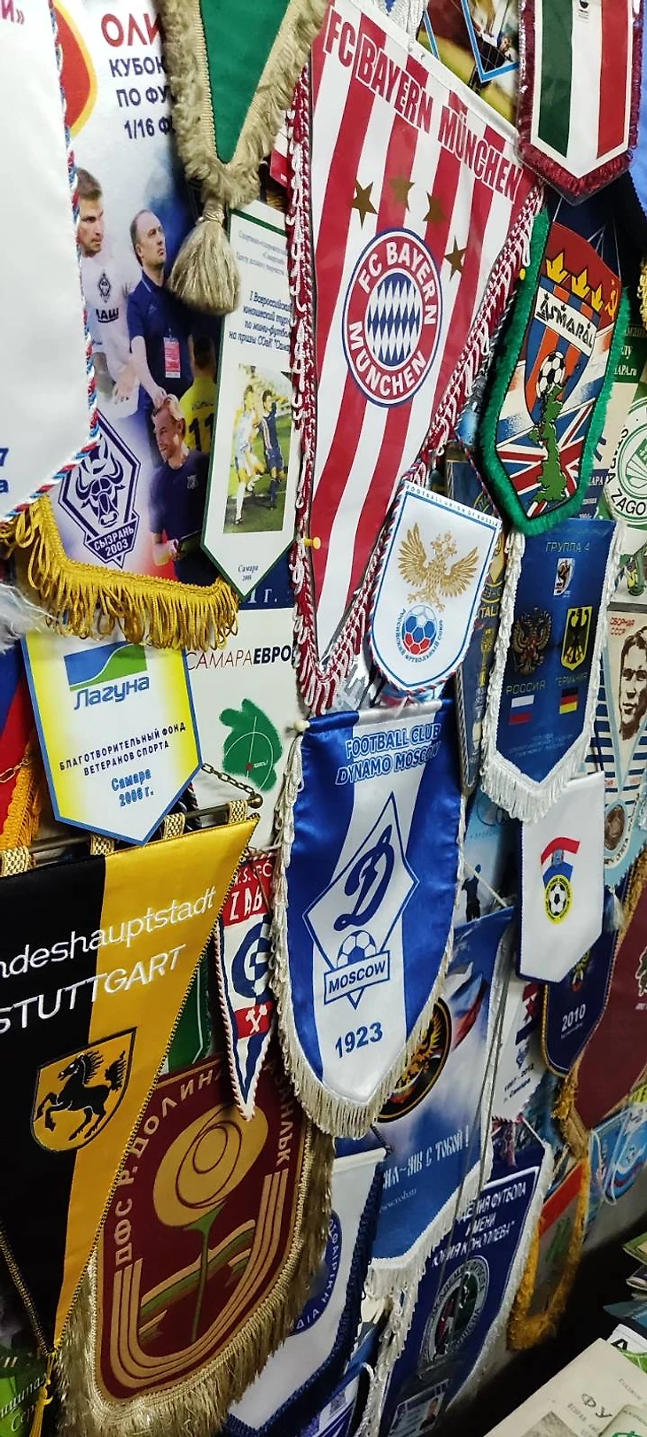 ーЭти вымпелы подарили нам Гаджи Гаджиев и несколько работников клуба. Там есть «Фейеноорд», есть «Фиорентина». «Крылья» играли эти матчи в 2004-2005 году. Они пересеклись с «Баварией» на сборах и провели один из таких тренировочных, контрольных матчей. И обменялись вымпелами и этот вымпел теперь оказался у нас в музее.