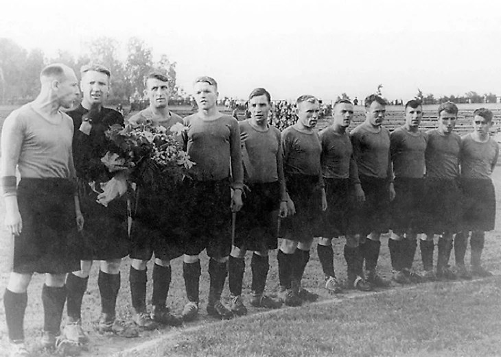 ー Это был большой спортивный праздник на стадионе «Локомотив». Есть неподтвержденные данные, что на нем был даже посол Великобритании Криппс (во время Великой Отечественной войны посольства были переведены в Куйбышев). Он был поражен, что здесь, в Куйбышеве, на краю света, играют в футбол. Этот праздник открыл старейший футболист, очень известный в Самаре, вратарь Виктор Крузе, который был вратарем сборной Самары еще в 1912-13 годах. Тогда он был ректором строительного института. Венгерский гроссмейстер Левинталь провел сеанс одновременной игры, были какие-то гимнастические этюды, а потом был футбольный матч «Локомотив» Куйбышев ー «Крылья Советов» Куйбышев. Тогда была война. Была полная секретность, названия команд были зашифрованы. Поэтому они и назывались команда капитана Карелина (капитана Михеева) и команда Константина Иванова. И в первом матче команда авиационной промышленности уступила со счетом 3:5.