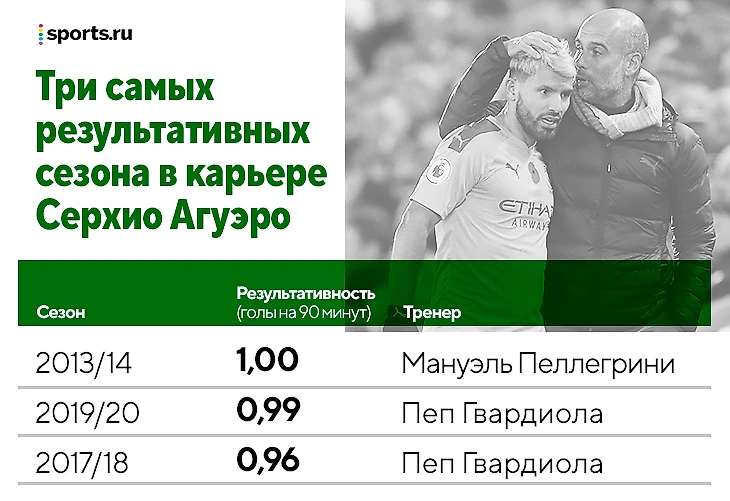 У Агуэро – похожая картина. В футбольном плане союз с Гвардиолой выделяется даже в масштабах его крайне яркой карьеры. Два из трех самых результативных сезона были при Пепе: