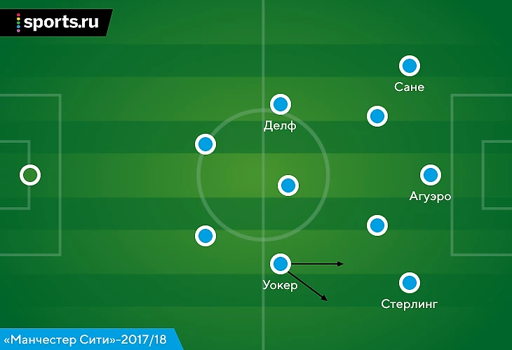 В «Ман Сити» вингерами выступали Лерой Сане и Рахим Стерлинг. Ложными фулбеками в тот сезон были Фабиан Делф и Кайл Уокер:
