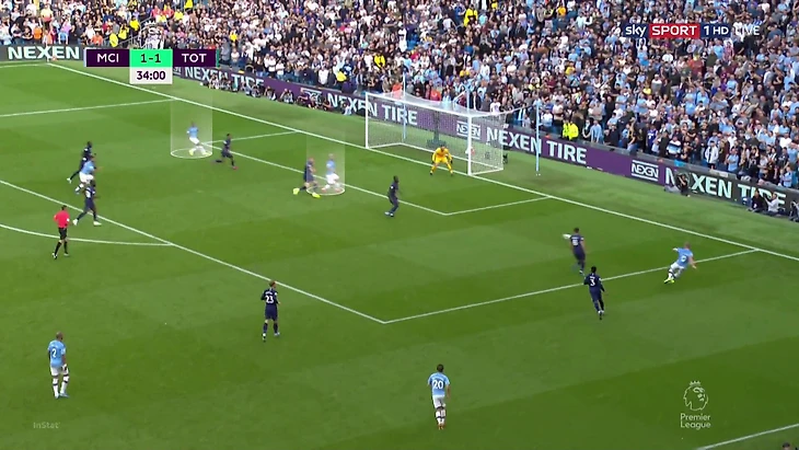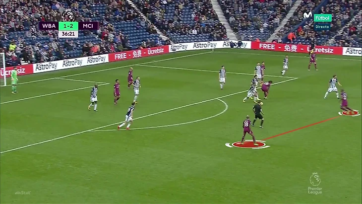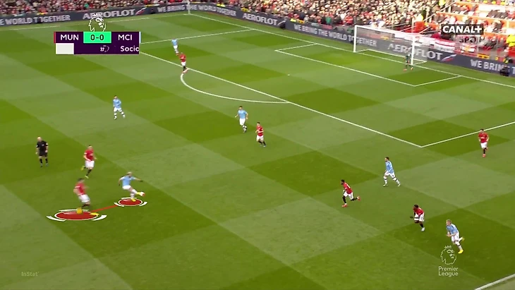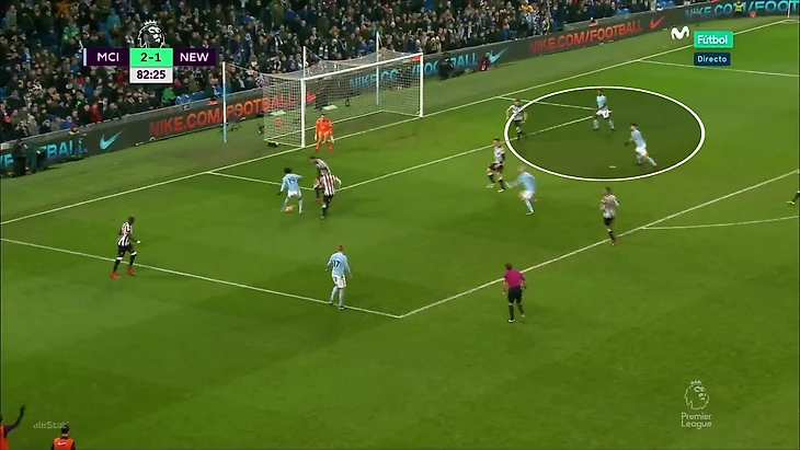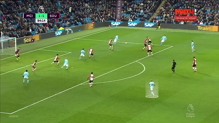 «Сити» по-разному выводил игроков на такой момент. Иногда комбинация с врыванием в штрафную полузащитника (КДБ или Сильва), иногда – через обыгрыш 1-в-1 от вингера, но варианты для завершения в таких эпизодах почти всегда создавали центральный нападающий + вингер с дальнего фланга.