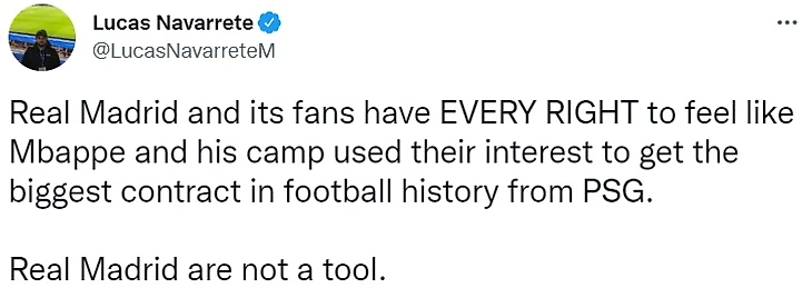 «Реал Мадрид» и его болельщики имеют полное право считать, что Мбаппе и его команда использовали их, чтобы получить самый крупный контракт в истории футбола от «ПСЖ». «Реал» - не инструмент для кого-то»