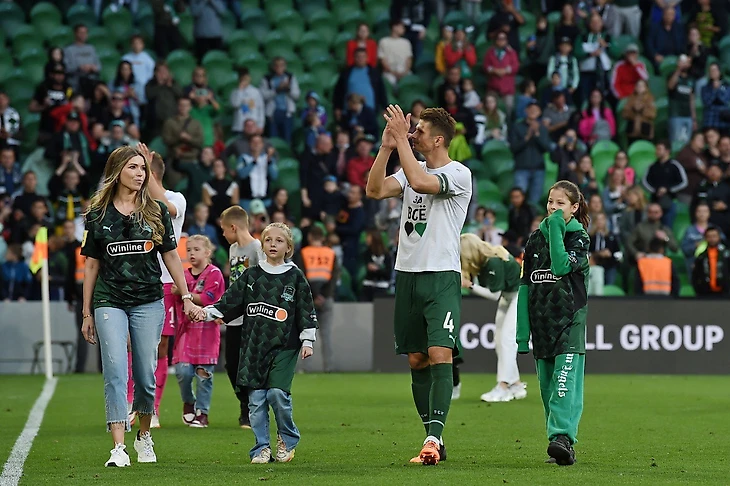 Всем добрый вечер. Даже не знаю с чего начать, честно сказать. Пролетели девять лет как один год. В первую очередь хочу благодарить президента клуба Сергея Николаевича. Спасибо за всё, что он сделал, делает для нас, для клуба, для города. Это заслуживает огромного уважения. Огромная благодарность тренерскому штабу, медицинскому, административному, всем тем, кто причастен к этому замечательному клубу огромное спасибо и большой поклон вам. И, конечно, отдельная благодарность вам, болельщики. Вы были в горе, в радости. Для нас это большая поддержка. Я навсегда черно-зеленый.