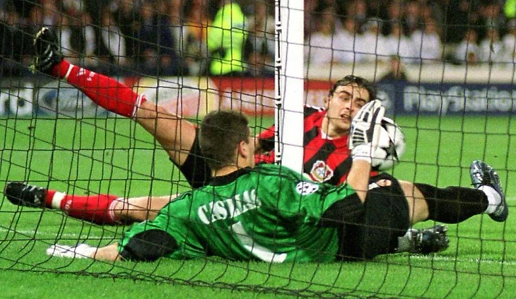 Команды выбрали открытый футбол, а уже на 8-й минуте Рауль, воспользовавшись феноменальным длинным вводом мяча из аута в исполнении Роберто Карлоса, убежал один на один с Буттом и открыл счет.