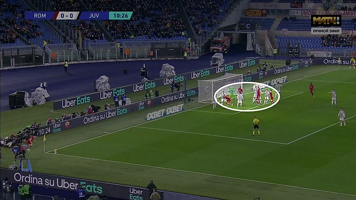 Под каждый тип подачи у «Ромы» свой подход. При подачах к створу ворот команда держит большую группу игроков во вратарской, включая основные угрозы: