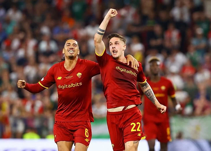 • игра через креативные умения техничных лидеров. В стартовом составе можно выделить трех таких игроков – Генрих Мхитарян, Лоренцо Пеллегрини и Николо Дзаньоло. Схема позволяет Моуринью размещать сразу всех – и всех именно в центральной зоне. Дальше в ход идут их индивидуальные придумки.