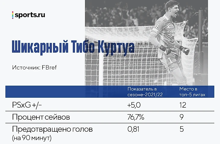 Куртуа проводит суперсезон: по основным вратарским метрикам в топ-15 в топ-лигах, при этом работы у Тибо было меньше, чем у конкурентов.