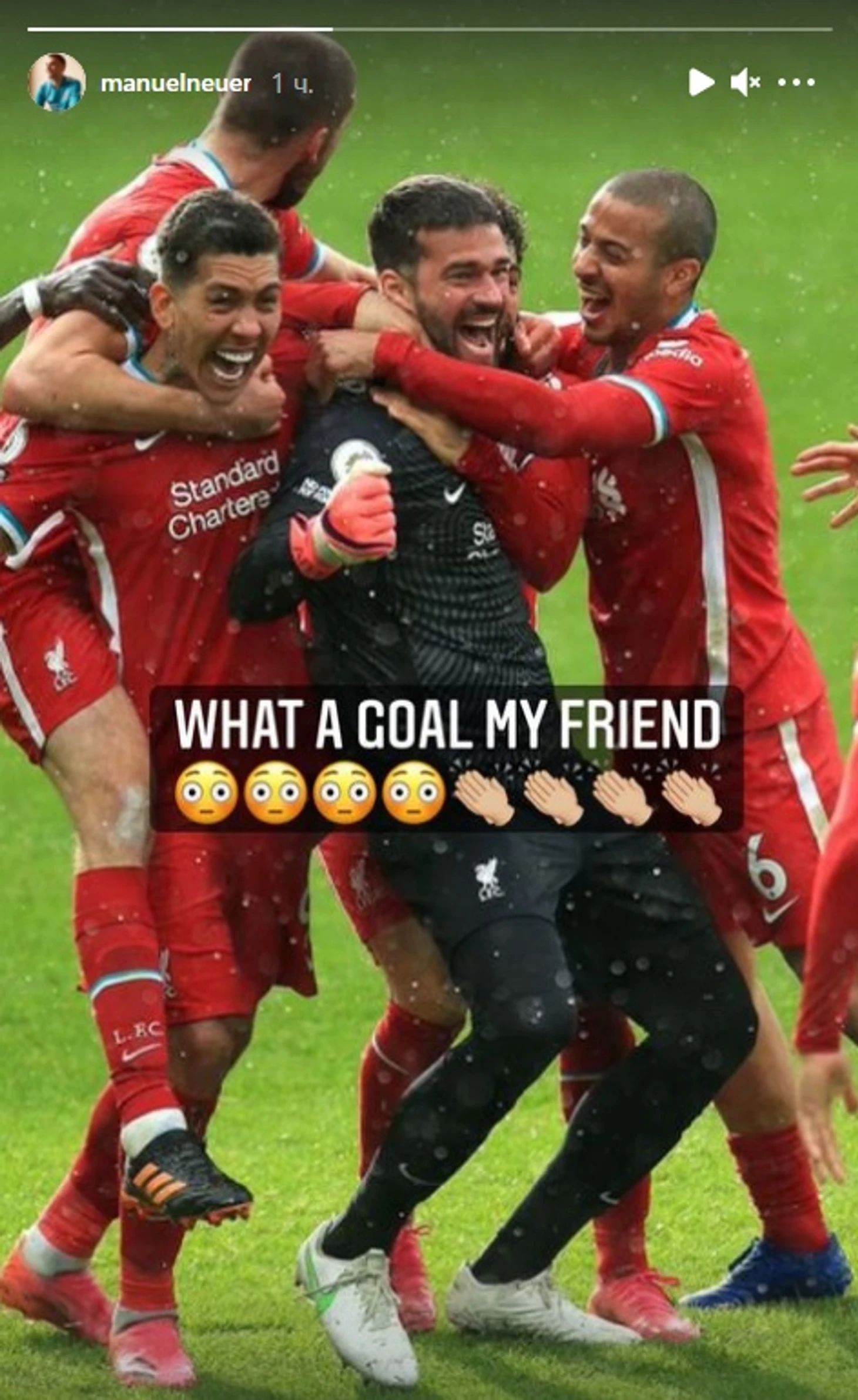 Мяч Алиссона стал одним из самых ярких событий уикенда в Европе. Мануэль Нойер даже запостил в соцсетях поздравление для бразильца.