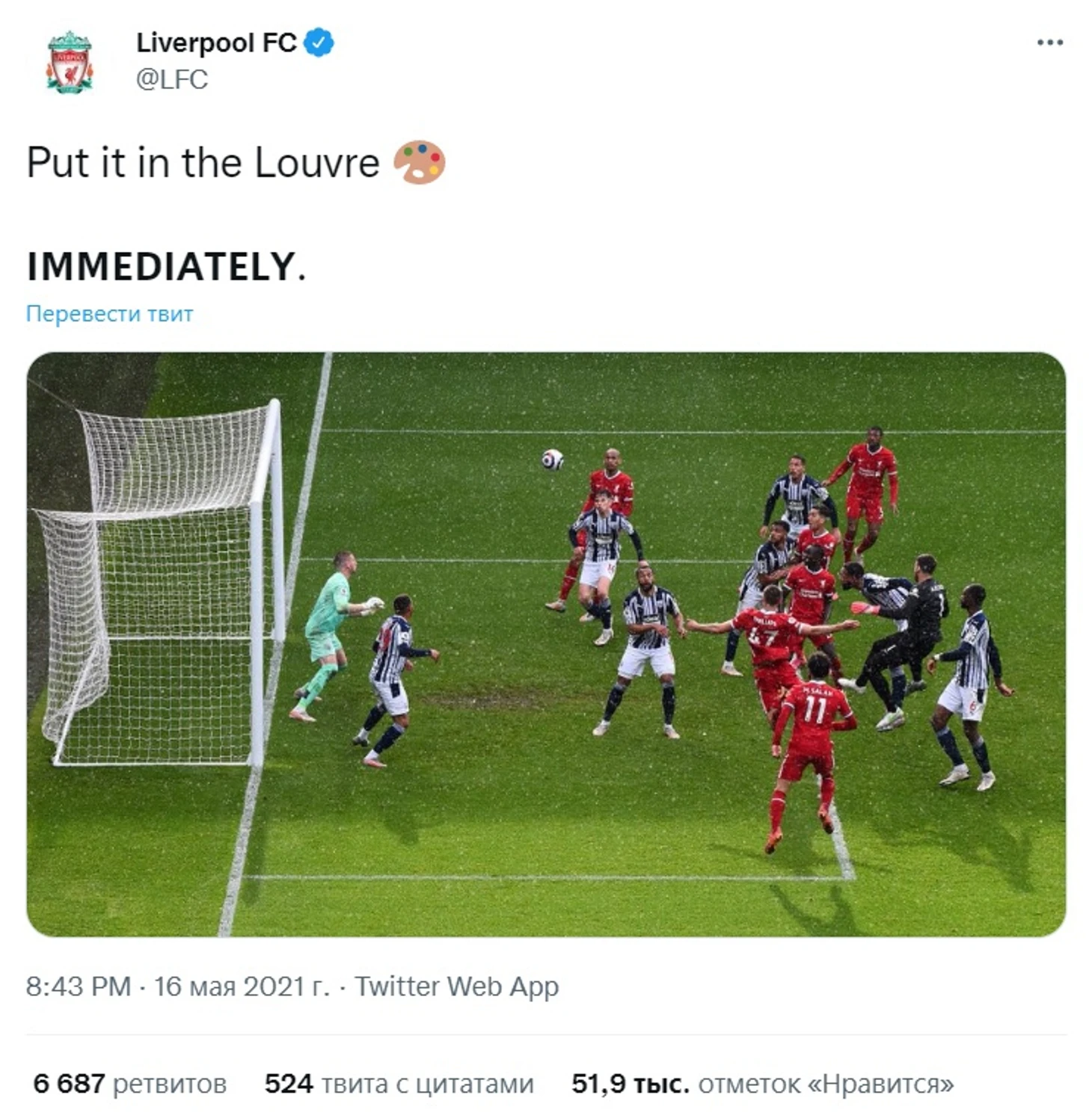 Официальные аккаунты «Ливерпуля» в соцсетях отреагировали на победу фотографией удара Алиссона с подписью «Отправляем в Лувр».